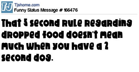 - # 140382 The 5 second rule for food dropped on the ground does not work if you have a 2 second dog.