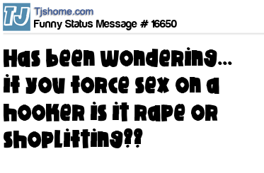 X is has been wondering... if you force sex on a hooker is it rape or shoplifting??