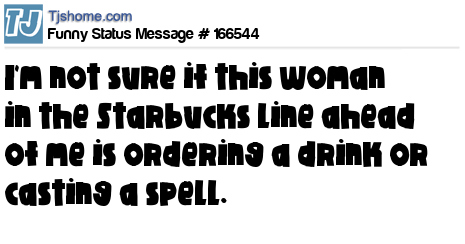 X says I'm not sure if this woman in the Starbucks line ahead of me is ordering a drink or casting a spell.