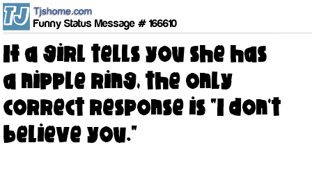 X says If a girl tells you she has a nipple ring, the only correct response is "I don't believe you."