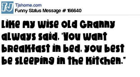 X says Like my wise old Granny always said, 'You want breakfast in bed, you best be sleeping in the kitchen."