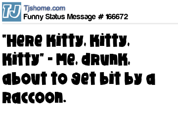 - # 159778 "Herrreee kitty, kitty, kitty" ~ Me, drunk, about to get bit by a raccoon.