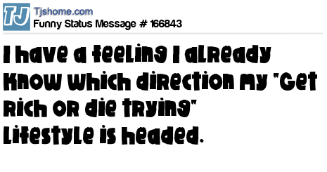 X says I have a feeling I already know which direction my "Get rich or die trying" lifestyle is headed.
