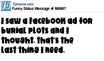 X says I saw a Facebook ad for burial plots and I thought, that's the last thing I need.