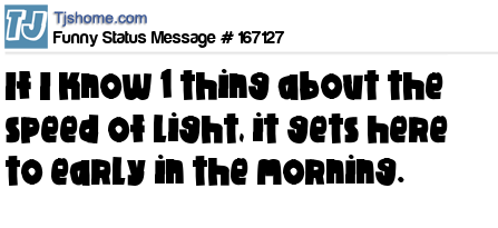X says If I know 1 thing about the speed of light, it gets here to early in the morning.