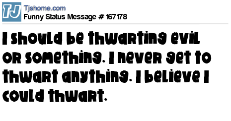 X says I should be thwarting evil or something. I never get to thwart anything. I believe I could thwart.