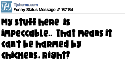 X says My stuff here  is impeccable..  That means it can't be harmed by chickens,, right?