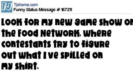 X says Look for my new game show on the Food Network, where contestants try to figure out what I’ve spilled on my shirt.