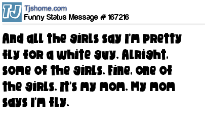 X says And all the girls say I'm pretty fly for a white guy. Alright, some of the girls. Fine, one of the girls. It's my mom. My mom says I'm fly.