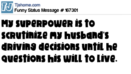 X says My superpower is to scrutinize my husband's driving decisions until he questions his will to live.