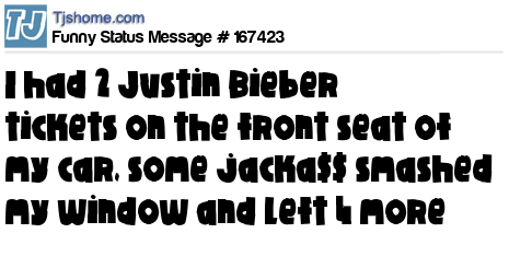 X says I had 2 Justin Bieber tickets on the front seat of my car, some jacka$$ smashed my window and left 4 more