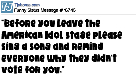 X "Before you leave the American Idol stage please sing a song and remind everyone why they didn't vote for you."