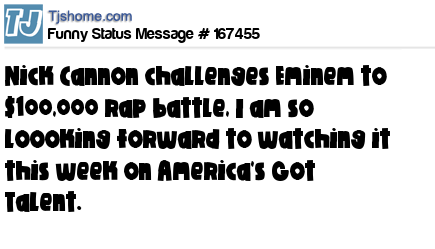 X says Nick Cannon challenges Eminem to $100,000 rap battle, I am so loooking forward to watching it this week on America's Got Talent.
