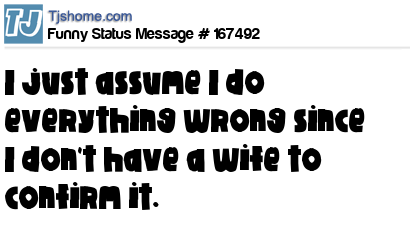 X says I just assume I do everything wrong since I don't have a wife to confirm it.