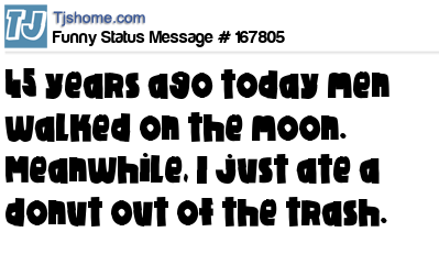 X says 45 years ago today men walked on the moon. Meanwhile, I just ate a donut out of the trash.
