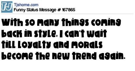 - # 168610 ..... With so many things coming back in style ... I can't wait until Morality, Honesty and Loyalty become the new trend again.