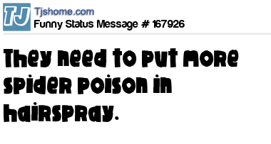 - # 110394 I just tried to kill a spider with hairspray. He's still alive, but his hair looks outstanding.