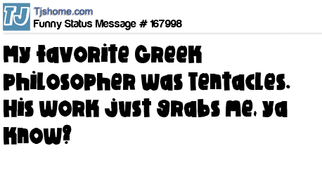 X says My favorite Greek philosopher was Tentacles. His work just grabs me, ya know?