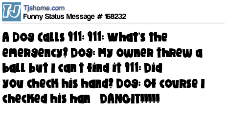 X A Dog Calls 911: 911: What's the emergency? Dog: My owner threw a ball but I can’t find it 911: Did you check his hand? Dog: Of course I checked his han—DANGIT!!!!!