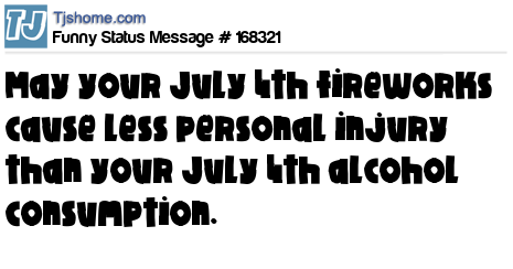 X says May your July 4th fireworks cause less personal injury than your July 4th alcohol consumption.