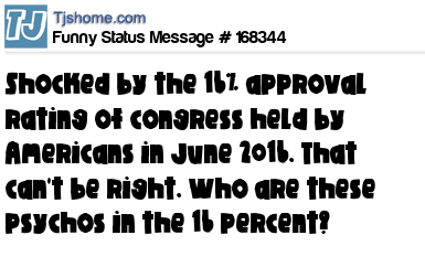 X says Shocked by the 16% approval rating of congress held by Americans in June 2016. That can't be right. Who are these psychos in the 16 percent?