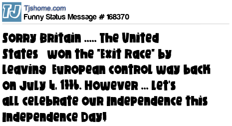 X Sorry Britain ..... The United States won the "Exit Race" by leaving European control way back on July 4, 1776. However ... let's all celebrate our Independence this Independence Day!
