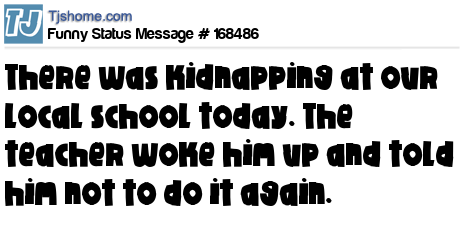 X There was kidnapping at our local school today. The teacher woke him up and told him not to do it again.