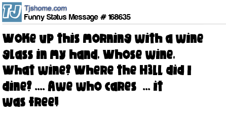 X Woke up this morning with a wine glass in my hand, Whose wine, What wine? Where the H3LL did I dine? .... Awe who cares ... it was free!