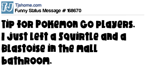 X says Tip for Pokemon Go players. I just left a Squirtle and a Blastoise in the mall bathroom.