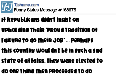 X If Republicans didn't insist on upholding their "Proud Tradition of Failure to do their JOB" ... Perhaps this country wouldn't be in such a sad state of affairs. They were elected to do one thing then proceeded to do another ..... SHEESH