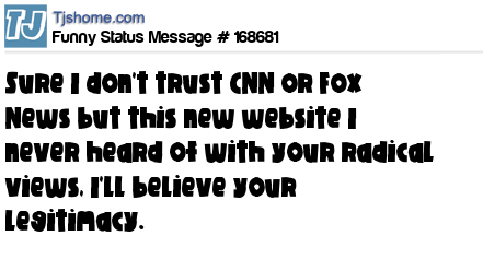 X says Sure I don't trust CNN or Fox News but this new website I never heard of with your radical views, I'll believe your legitimacy.