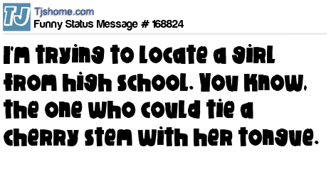 X I'm trying to locate a girl from high school. You know, the one who could tie a cherry stem with her tongue.