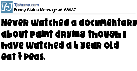 X says Never watched a documentary about paint drying though I have watched a 4 year old eat 7 peas.