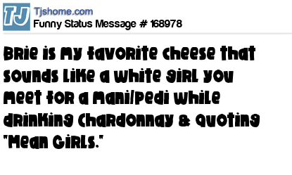 X says Brie is my favorite cheese that sounds like a white girl you meet for a mani/pedi while drinking Chardonnay & quoting "Mean Girls."