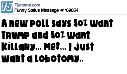 X A new poll says 50% want Trump and 50% want Killary... Me?... I just want a lobotomy..
