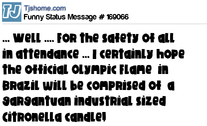 X ... Well .... For the safety of all in attendance ... I certainly hope the official Olympic Flame in Brazil will be comprised of a gargantuan industrial sized Citronella candle!