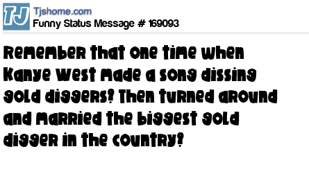 X says Remember that one time when Kanye West made a song dissing gold diggers? Then turned around and married the biggest gold digger in the country?