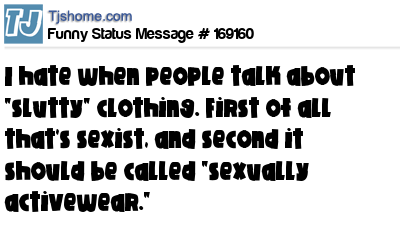X says I hate when people talk about "slutty" clothing. First of all that's sexist, and second it should be called "sexually activewear."