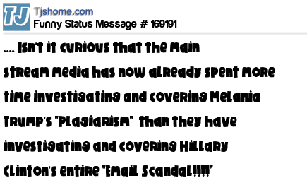 X says .... Isn't it curious that the main stream media has now already spent more time investigating and covering Melania Trump's "Plagiarism" than they have investigating and covering Hillary Clinton's entire "Email Scandal!!!!"