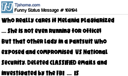 X Who really cares if Melania plagiarized .... She is not even running for office! But that other lady in a pantsuit who exposed and compromised US National Security, Deleted CLASSIFIED emails and investigated by the FBI .... IS running for President.
