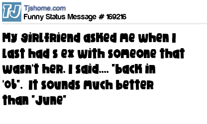 X My girlfriend asked me when I last had s ex with someone that wasn't her. I said.... "back in '06". It sounds much better than "June"