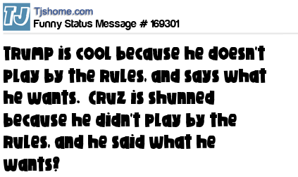 X says Trump is cool because he doesn't play by the rules, and says what he wants. Cruz is shunned because he didn't play by the rules, and he said what he wants?