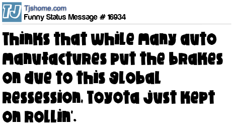 X thinks that while many auto manufactures put the brakes on due to this global ressession, Toyota just kept on rollin'.