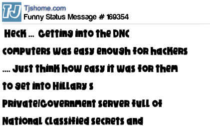 X Heck ... Getting into the DNC computers was easy enough for hackers .... Just think how easy it was for them to get into Hillary’s Private/Government server full of National Classified secrets and information that wasn’t even protected by a password