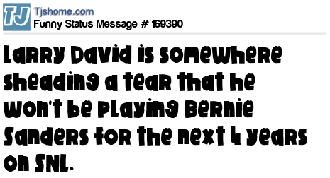 X says Larry David is somewhere sheading a tear that he won't be playing Bernie Sanders for the next 4 years on SNL.
