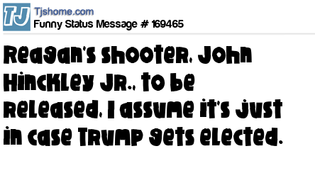 X says Reagan's shooter, John Hinckley Jr., to be released, I assume it's just in case Trump gets elected.