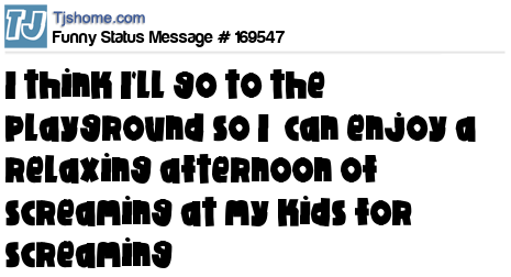 X says I think I'll go to the playground so I can enjoy a relaxing afternoon of screaming at my kids for screaming