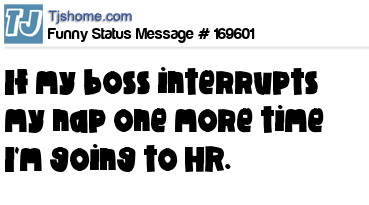 X says If my boss interrupts my nap one more time I'm going to HR.