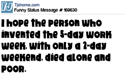 X says I hope the person who invented the 5-day work week, with only a 2-day weekend, died alone and poor.