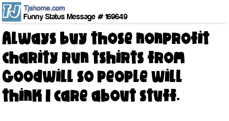 X says Always buy those nonprofit charity run tshirts from Goodwill so people will think I care about stuff.